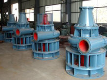 水輪泵中的水輪機(jī)一般為軸流式,離心泵的壓出室一般采用蝸殼式。泵設(shè)在水輪機(jī)之上,整機(jī)全部淹沒在水中運(yùn)轉(zhuǎn),因此無需吸水管。泵和水輪機(jī)之間采用水潤滑軸承。水輪泵結(jié)構(gòu)簡單,制造容易,操作方便,維修費(fèi)用很低,不抽水時(shí)接動(dòng)力輸出軸可帶動(dòng)加工機(jī)械或小型發(fā)電機(jī),特別適合于山區(qū)農(nóng)村使用。沿海還建有利用潮汐能的水輪泵站。