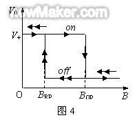 如圖所示,其中Bnp為工作點“開”的磁感應強度,BRP為釋放點“關”的磁感應強度。當外加的磁感應強度超過動作點Bnp時,傳感器輸出低電平,當磁感應強度降到動作點Bnp以下時,傳感器輸出電平不變,一直要降到釋放點BRP時,傳感器才由低電平躍變為高電平。Bnp與BRP之間的滯后使開關動作更為可靠。
