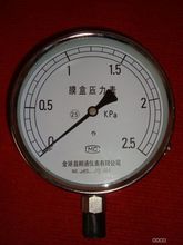 不銹鋼膜盒壓力表參照原膜盒壓力表的結構特點而研制的具有耐腐蝕作用的微壓表。應用于鍋爐通風和氣體管道等設備上,在耐腐要求較高的工藝流程中測量各種氣體介質的微壓和負壓。精確度等級:2.5