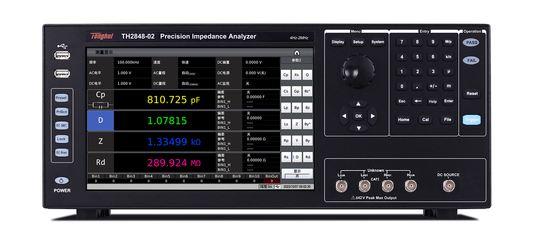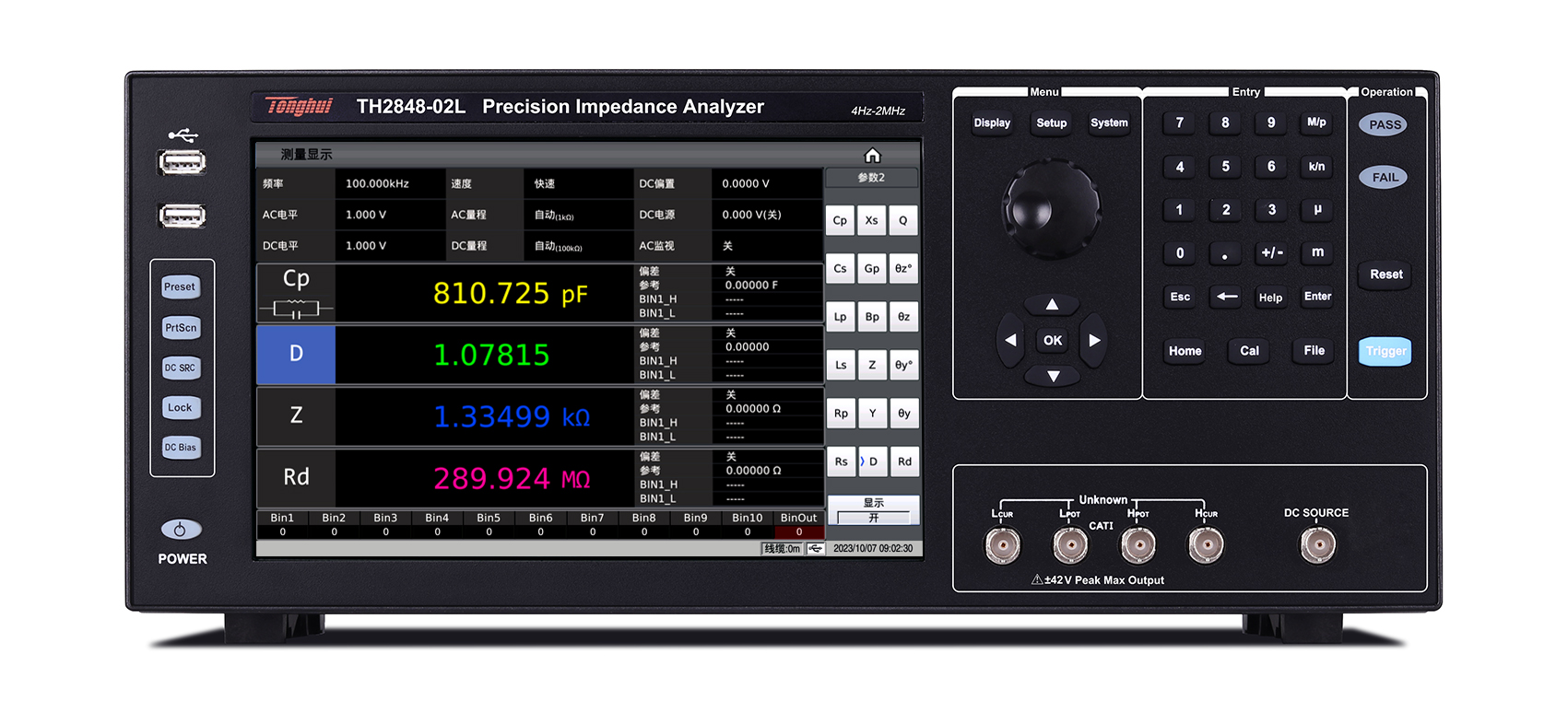 ? 高精度0.05%:采用自動平衡電橋技術,四端對測試配置