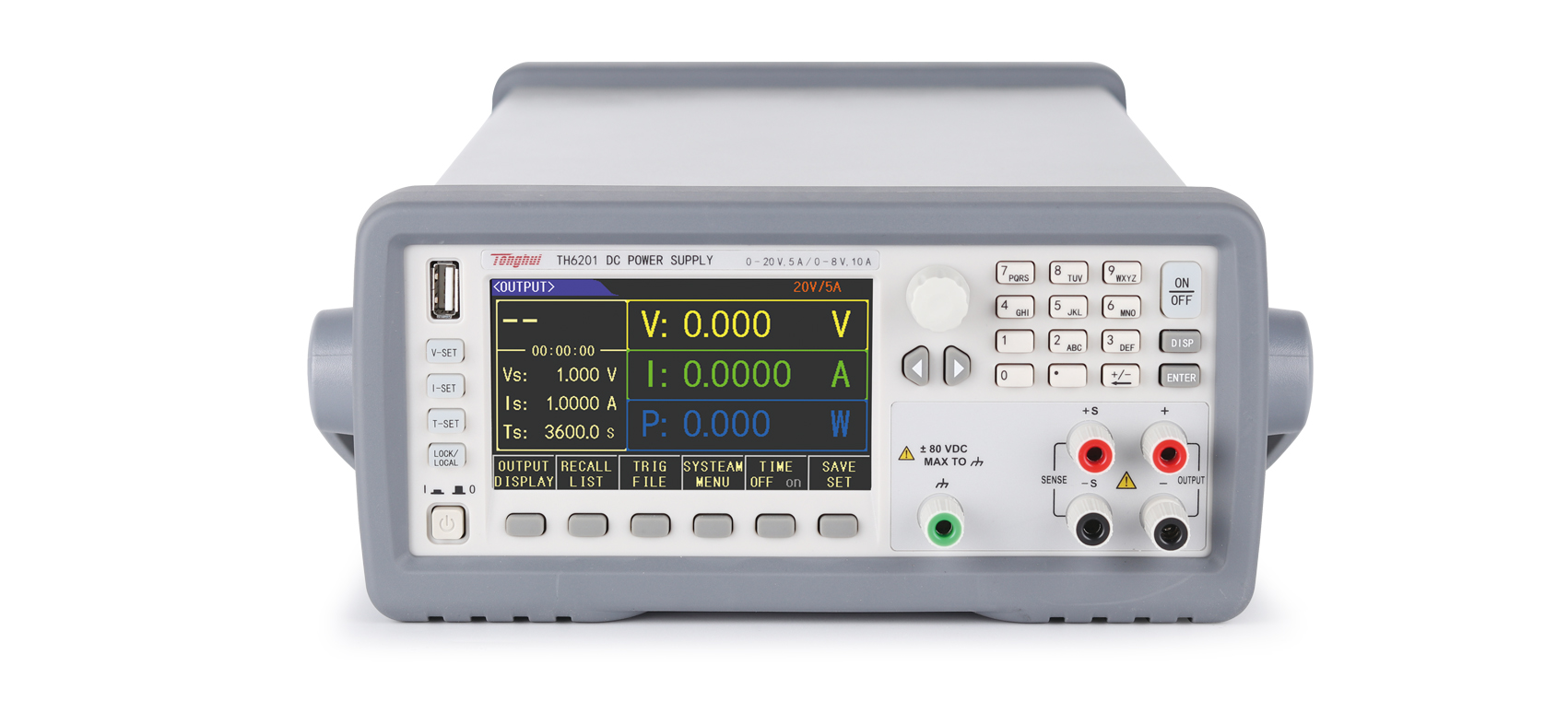 TH6200系列電源前后面板都可以輸出,具有1/2標準機箱尺寸,配備齊全的通訊接口,支持SCPI和MODBUS通訊協議,使其可以方便的集成于自動化系統上。