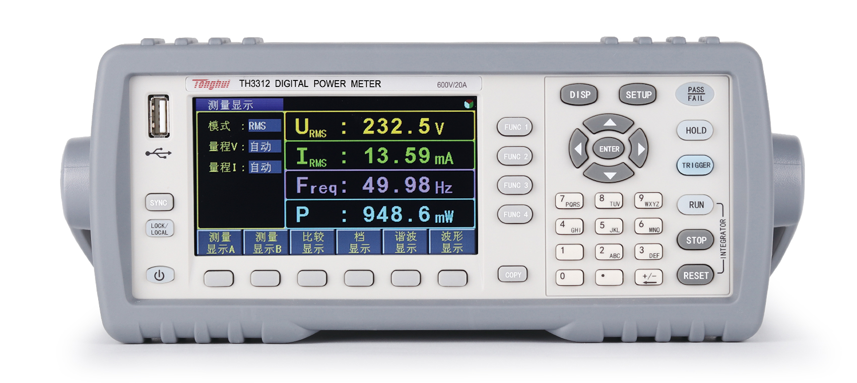 TH3300系列數字功率計具有高頻率測試范圍及寬頻響,提供諧波分析及多種諧波數據顯示方式(列表、柱狀等); 提供測量輸入信號波形顯示(電壓與電流同時或分別顯示)