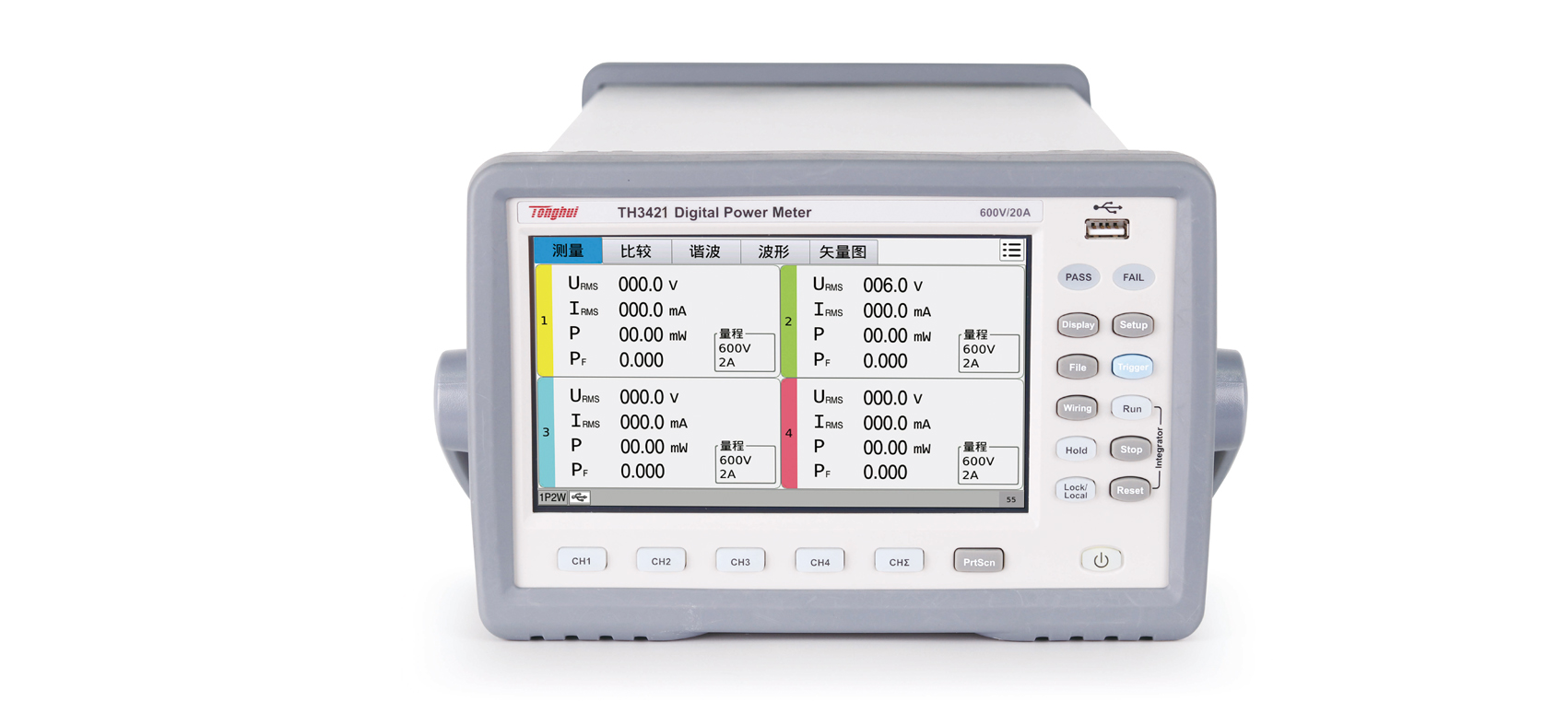 TH3411/TH3421/TH3422是采用專業(yè)的鎖相環(huán)倍頻同步技術,多通道同步源信號可選,搭載嵌入式操作系統(tǒng),使得人機交互接口較為靈活穩(wěn)定,其(0.15%讀數+0.2%量程+1字)的基本精度、常規(guī)測試7次的測試速度、DC/45Hz-420Hz的頻率范圍可以滿足市場上大部分電力系統(tǒng)的測量要求,標配諧波分析功能,對于工頻信號最大可測試50次諧波成分。